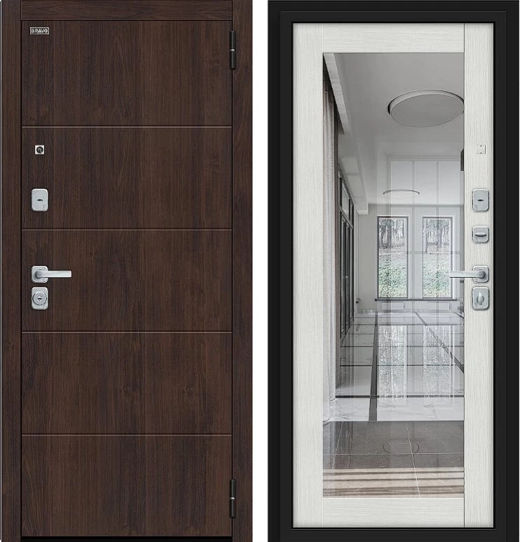 Надежная входная Дверь Браво Флэт/BChrome Almon/Bianco Melinga премиум класса по цене 41 835 руб. Большая толщина стали защитит от проникновения в ваш дом, квартиру или коттедж. Используется очень качественная фурнитура: замки, цилиндры, ручки, защелки. Покрытие и отделка двери изготовлено под внимательным контролем производителя. Дверь имеет долгий срок службы и гарантию.