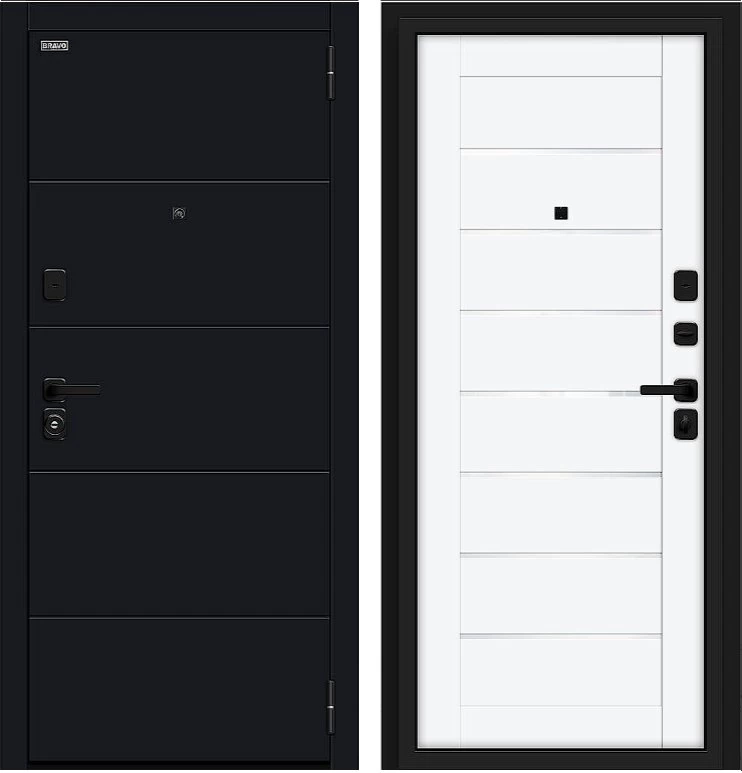 Надежная входная Дверь Браво Прайм/SBlack-Black Shell/White Silk премиум класса по цене 39 735 руб. Большая толщина стали защитит от проникновения в ваш дом, квартиру или коттедж. Используется очень качественная фурнитура: замки, цилиндры, ручки, защелки. Покрытие и отделка двери изготовлено под внимательным контролем производителя. Дверь имеет долгий срок службы и гарантию.