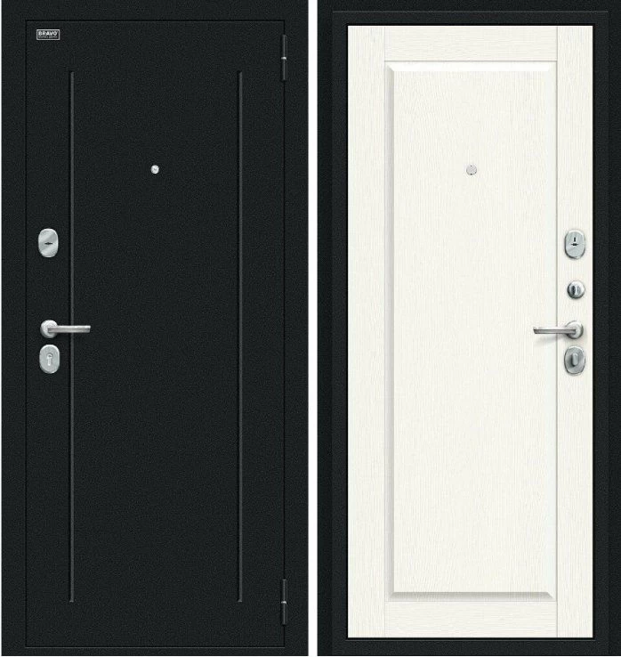 Надежная входная Дверь Браво Сьют Kale Букле черное White Wood премиум класса по цене 35 905 руб. Большая толщина стали защитит от проникновения в ваш дом, квартиру или коттедж. Используется очень качественная фурнитура: замки, цилиндры, ручки, защелки. Покрытие и отделка двери изготовлено под внимательным контролем производителя. Дверь имеет долгий срок службы и гарантию.