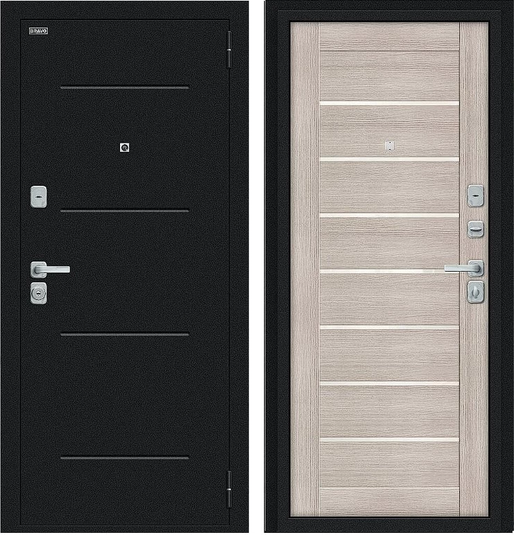 Надежная входная Дверь Браво Техно/BChrome Букле черное/Cappuccino Melinga премиум класса по цене 34 435 руб. Большая толщина стали защитит от проникновения в ваш дом, квартиру или коттедж. Используется очень качественная фурнитура: замки, цилиндры, ручки, защелки. Покрытие и отделка двери изготовлено под внимательным контролем производителя. Дверь имеет долгий срок службы и гарантию.