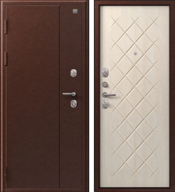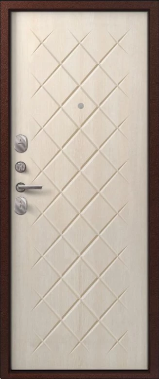 Надежная входная Дверь V-02 медь антик - седой дуб премиум класса по цене 36 285 руб. Большая толщина стали защитит от проникновения в ваш дом, квартиру или коттедж. Используется очень качественная фурнитура: замки, цилиндры, ручки, защелки. Покрытие и отделка двери изготовлено под внимательным контролем производителя. Дверь имеет долгий срок службы и гарантию.